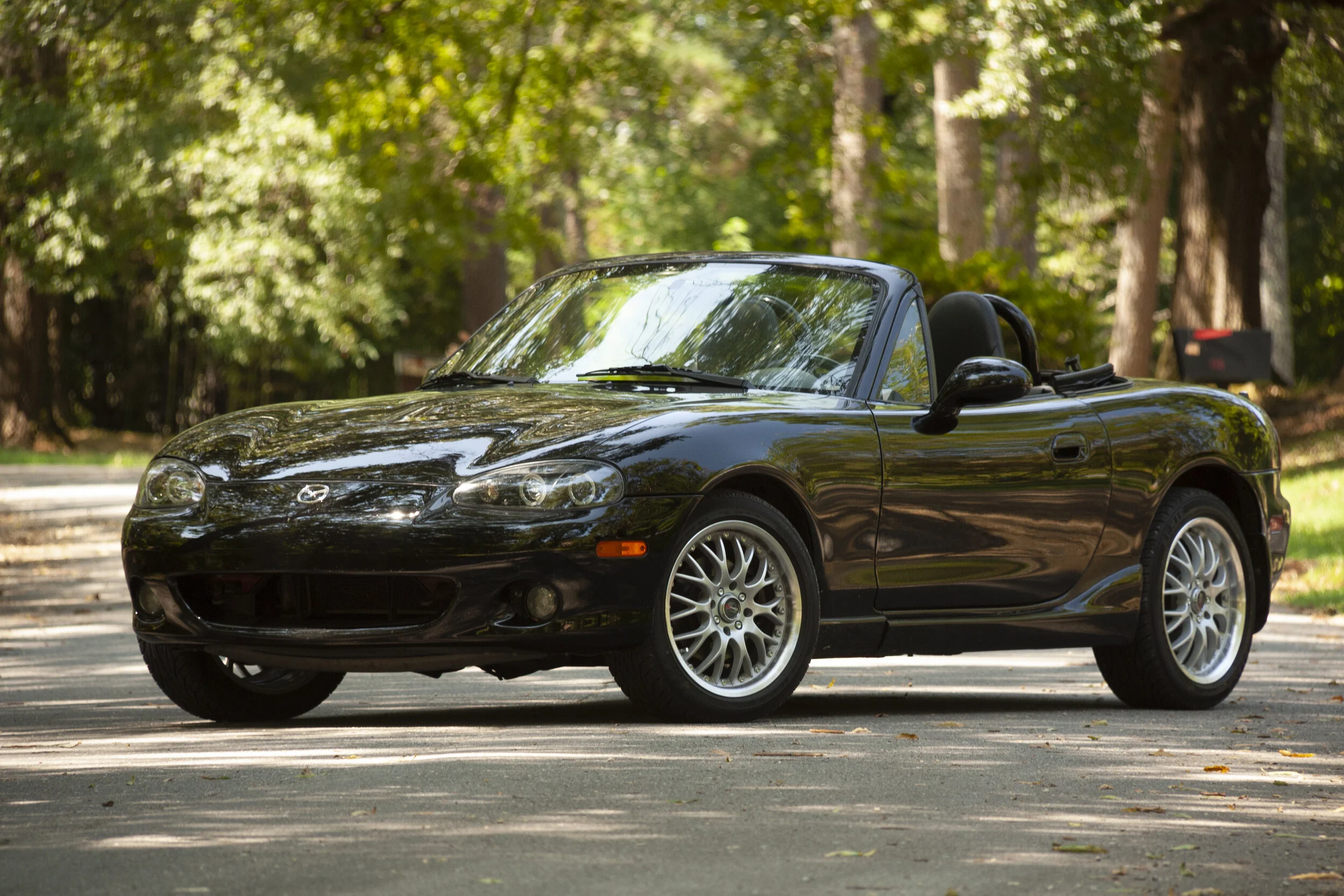 This 2001 Mazda Miata LS is finished in black over a black and tan interior. This vehicle is powered by a 1.8-liter inline-four mated to a 6 speed manual transmission and a Torsen limited slip differential. Factory equipment includes a Bose sound system, air conditioning, Bilstein shocks, fog lights, and a three-spoke Nardi steering wheel. Aftermarket additions include Drag DR19 16” Wheels, a Product Innovations Delrin shift knob, a new soft-top installed in June of 2020, and Brand XX LED Headlights. This car was first registered in Tennessee where it was driven until its purchase by the current owner in August of 2020 where it was moved to Alabama. This Miata’s odometer shows 136,000 miles and is offered with a clean CarFax report, a clean Alabama title, and several removed and aftermarket parts. Included service records show a new clutch, timing belt, Sport Brand X tires, new fluids, and water pump installed in June of 2020.